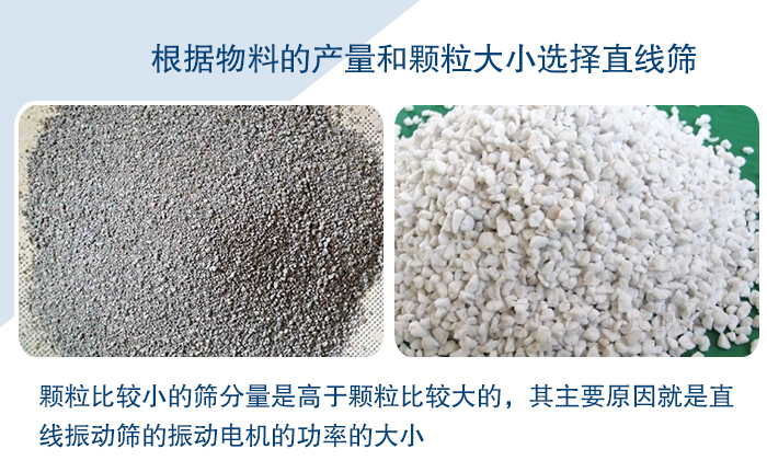 1,根據(jù)物料的產(chǎn)量和顆粒大小選擇直線篩