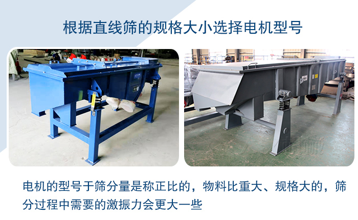2,根據(jù)直線篩的規(guī)格大小選擇電機(jī)型號(hào)
